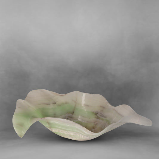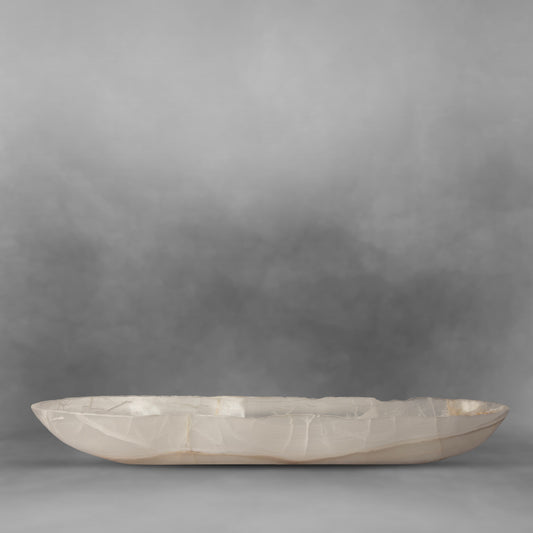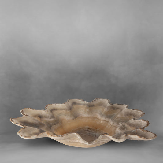 Delicate canoe, patterns in light brown with white, large onyx bowl