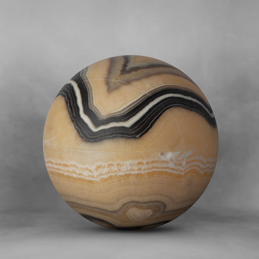 Almost Jupiter, astonishing onyx sphere lamp in light browns and black