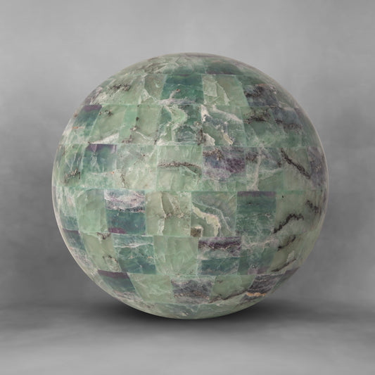 Snow in the Grass, whites and lights greens, flourite sphere lamp
