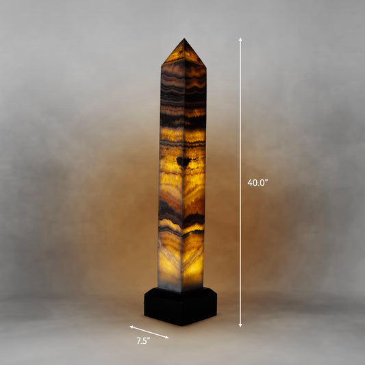 Terracotta Patterns, impressive onyx obelisk lamp (large)