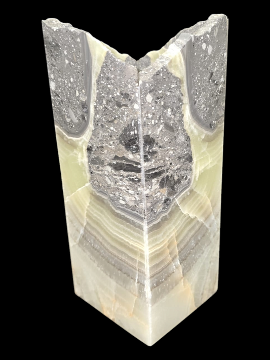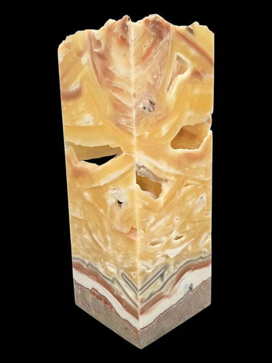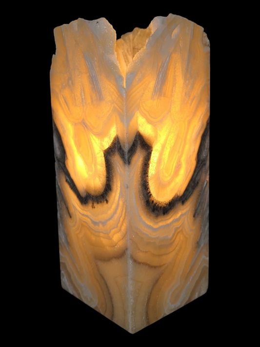 Layers of the Earth Series 75, multicolored onyx rectangle table lamp, irregular top
