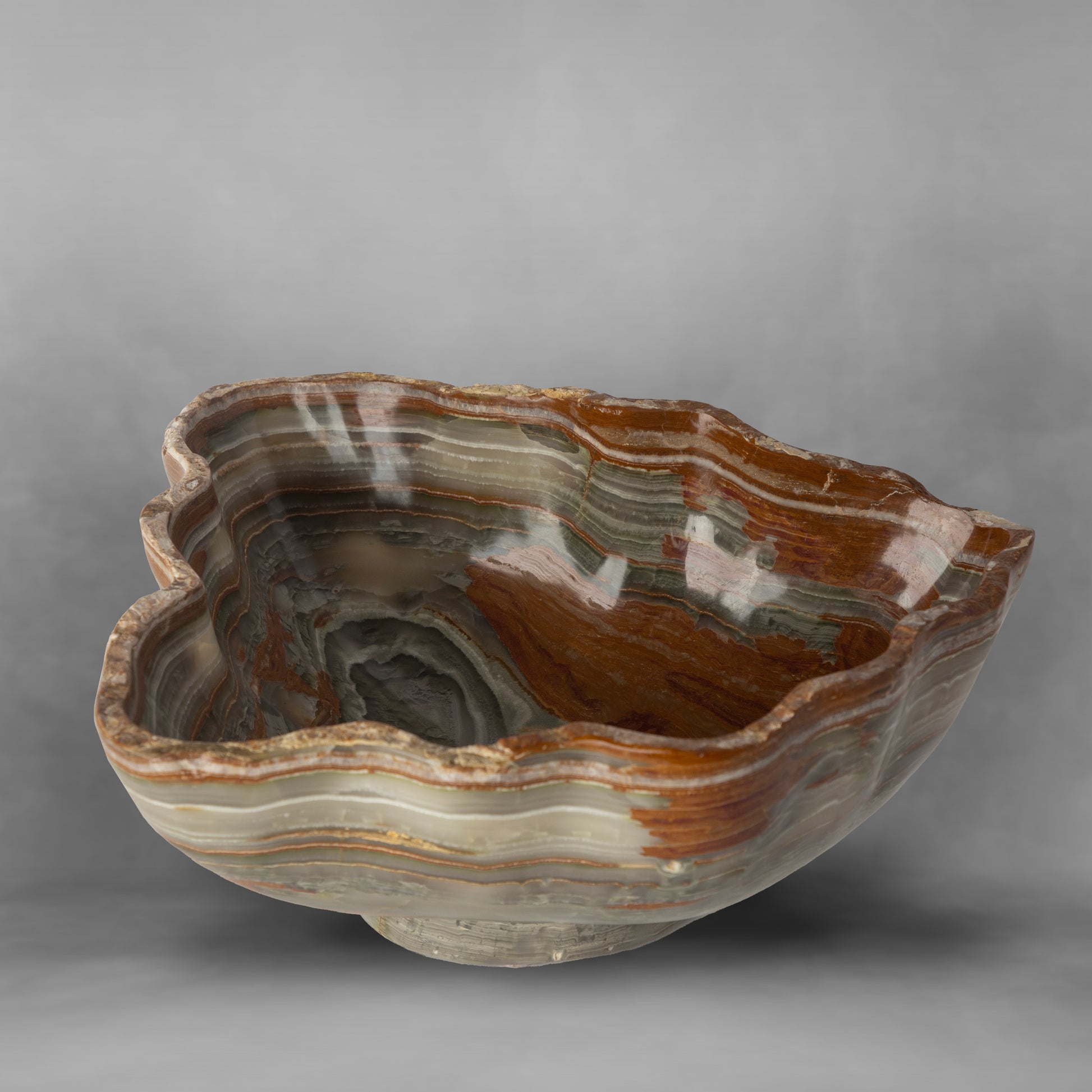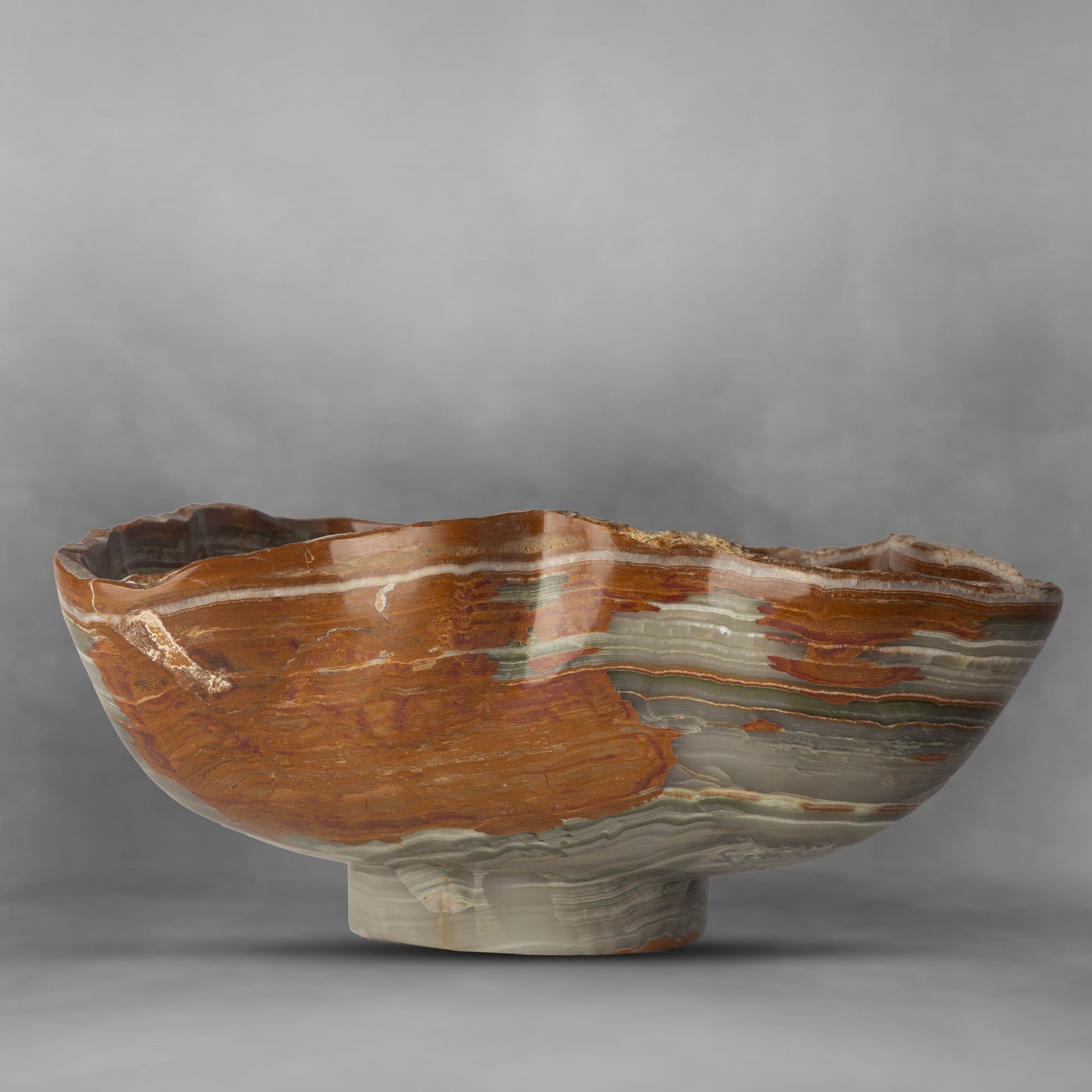 Stunning terracotta on gray, breathtaking onyx bowl (large)