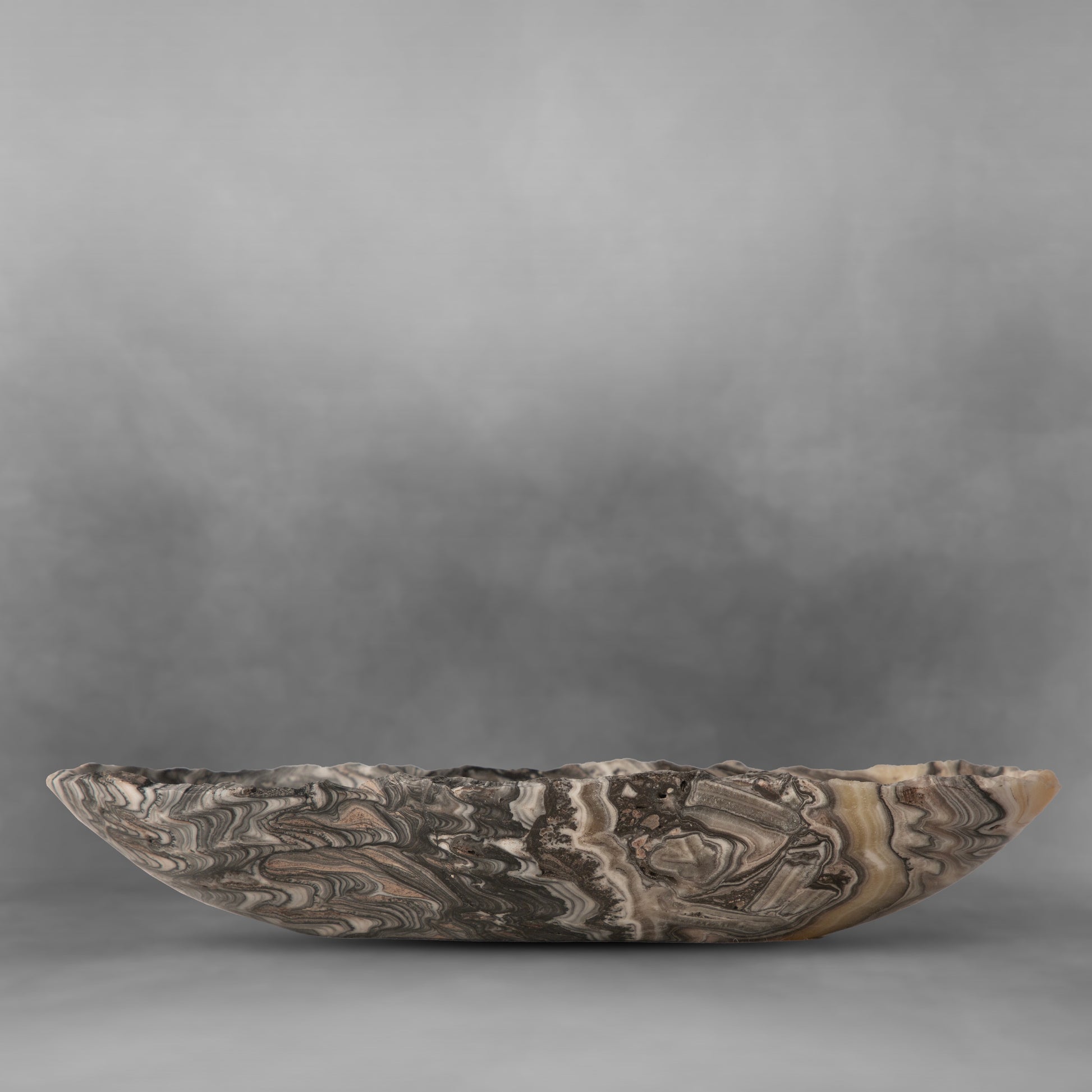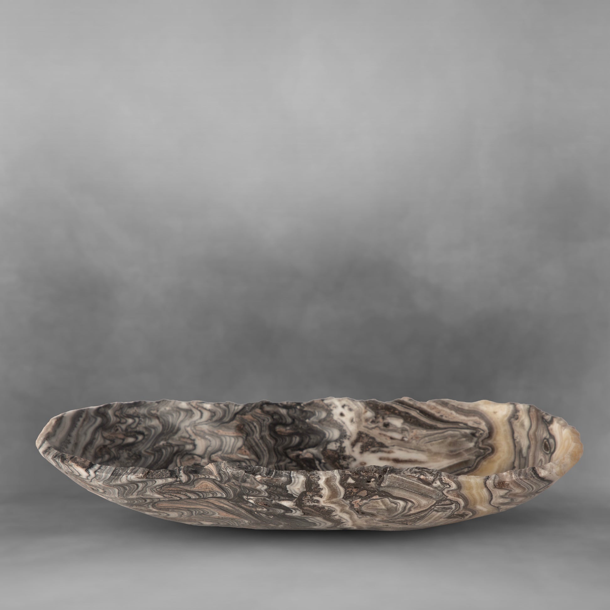 This beautiful small candy bowl, crafted from natural onyx stone, features abstract gray accents and brushstrokes of white. Elevate your home decor with this one-of-a-kind and unique piece of art.