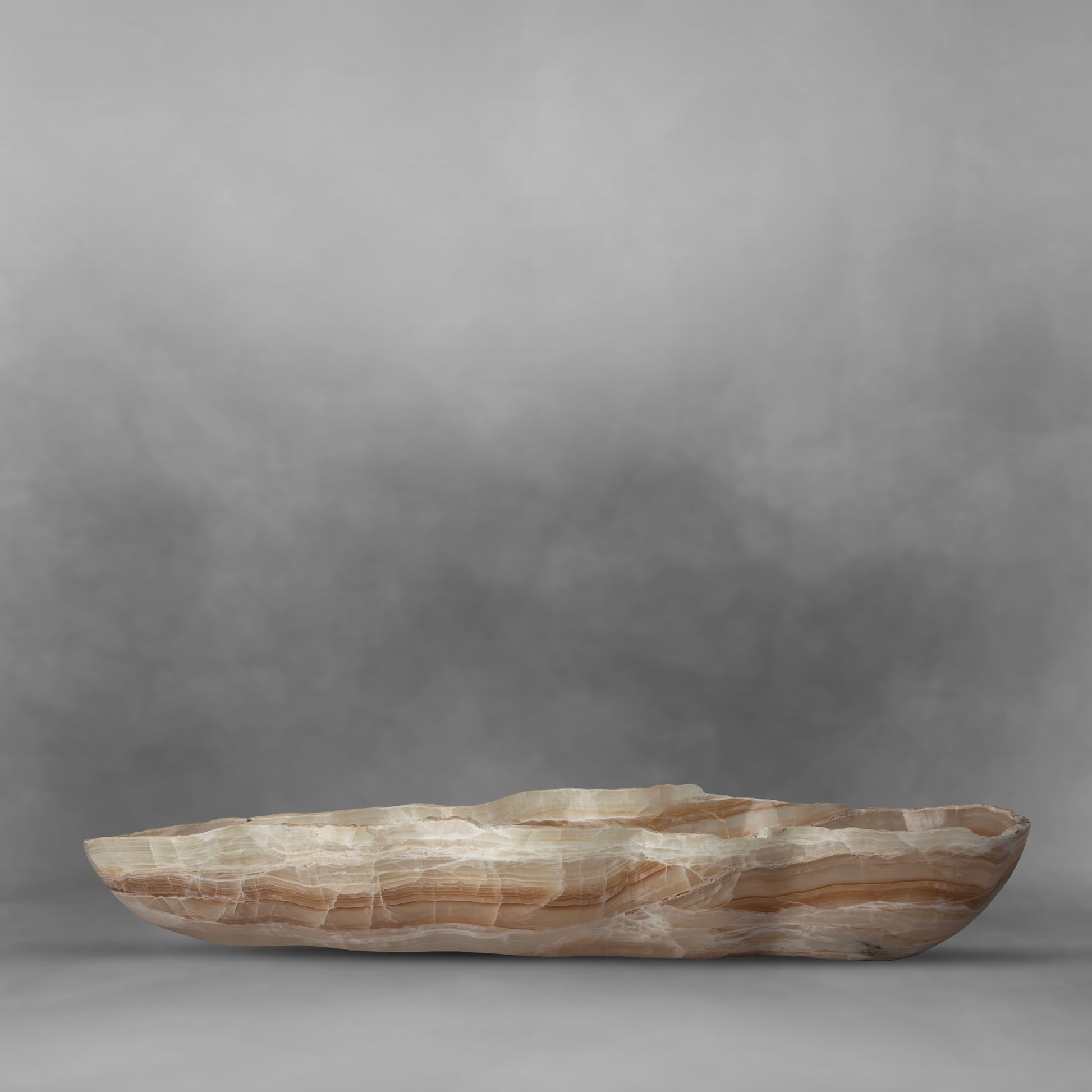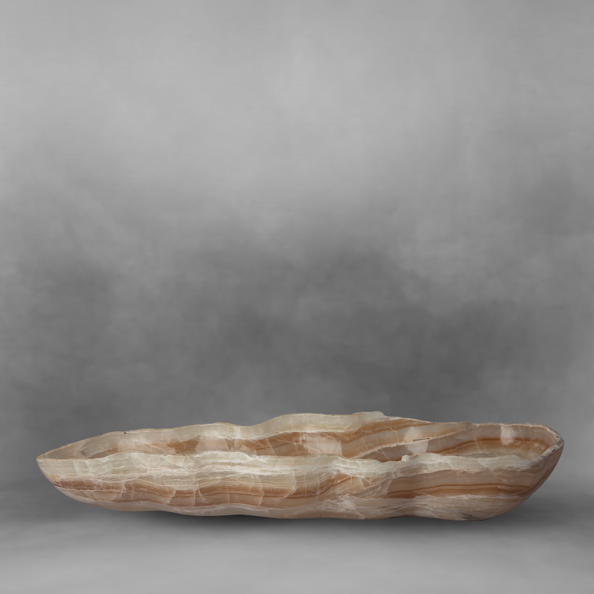 Delicate canoe, patterns in light brown with white, large onyx bowl