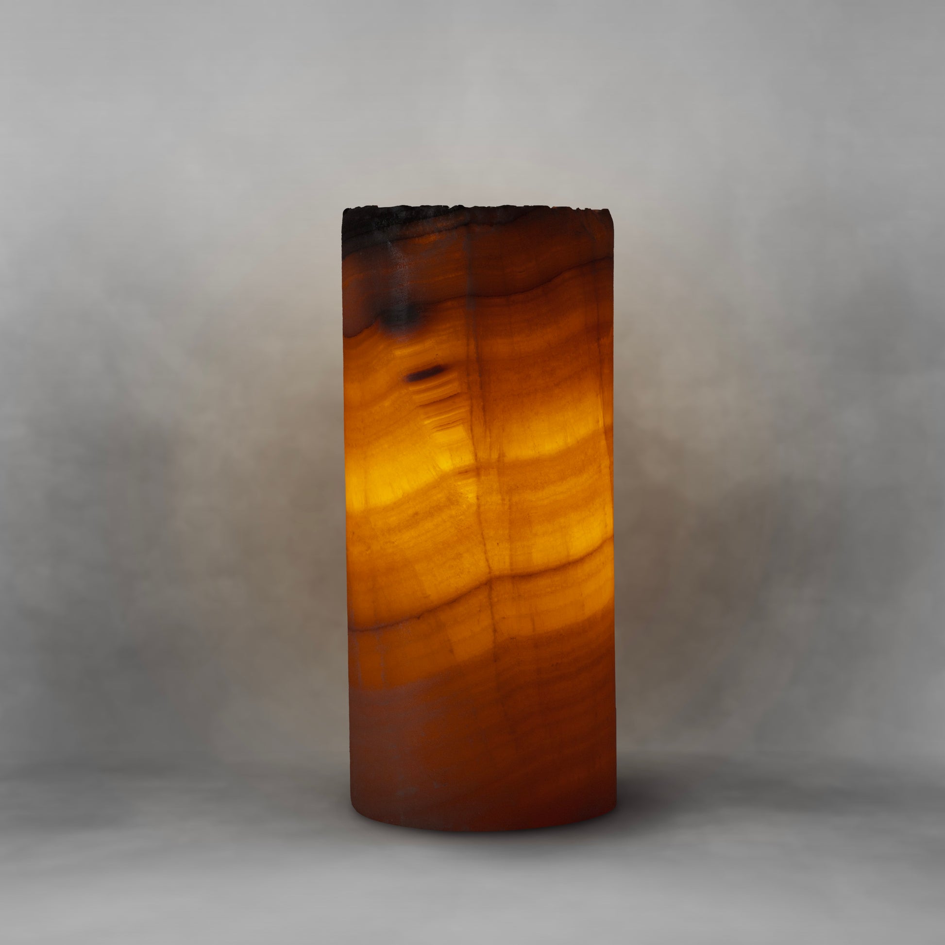 Orange & Gray Stripe, fancy onyx table lamp with irregular top
