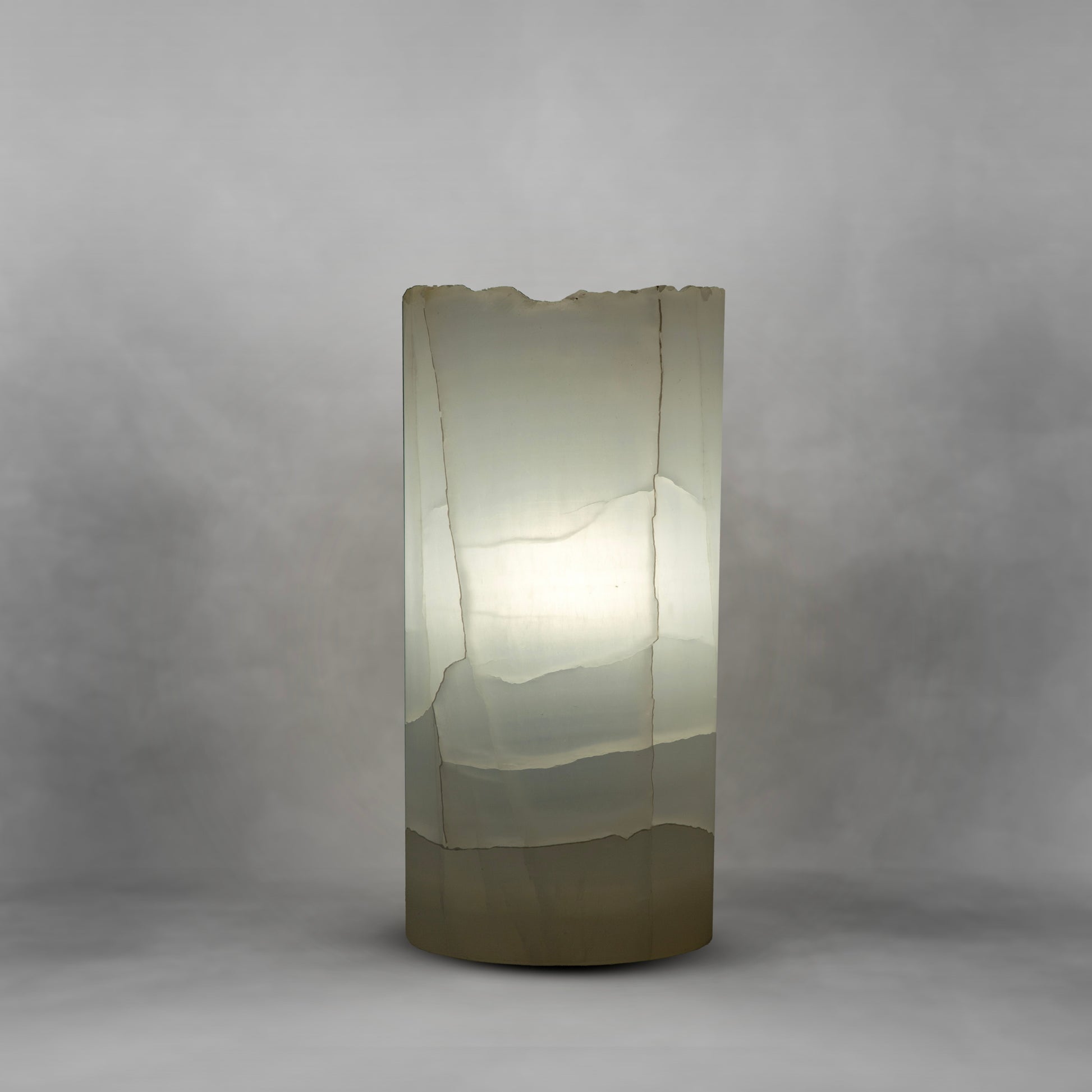 Light up your space with the White Fracture, elegantly and sophisticated table lamps. Crafted from onyx with an irregular top, this lamp is sure to add class and charm to your home, office or any space.