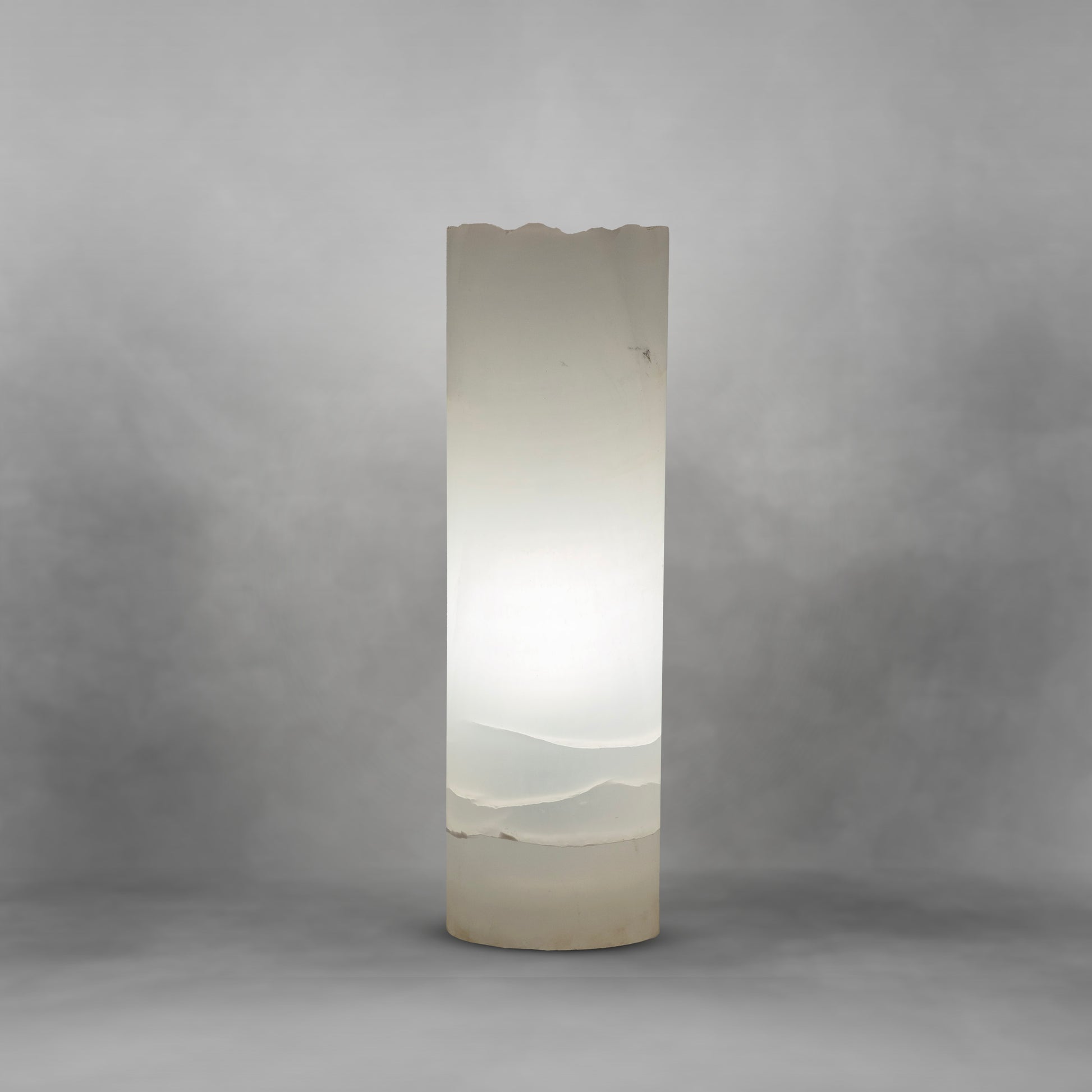 Light up your space with the White Fracture Series, elegantly and sophisticated table lamps. Crafted from onyx with an irregular top, this lamp is sure to add class and charm to your home, office or any space.