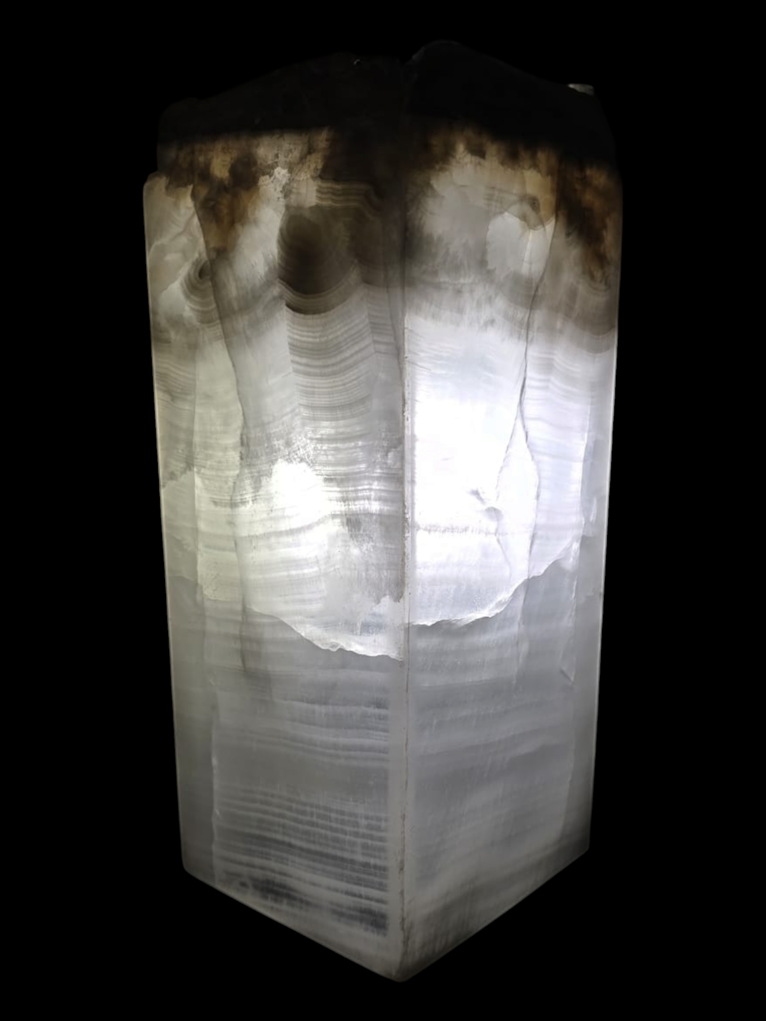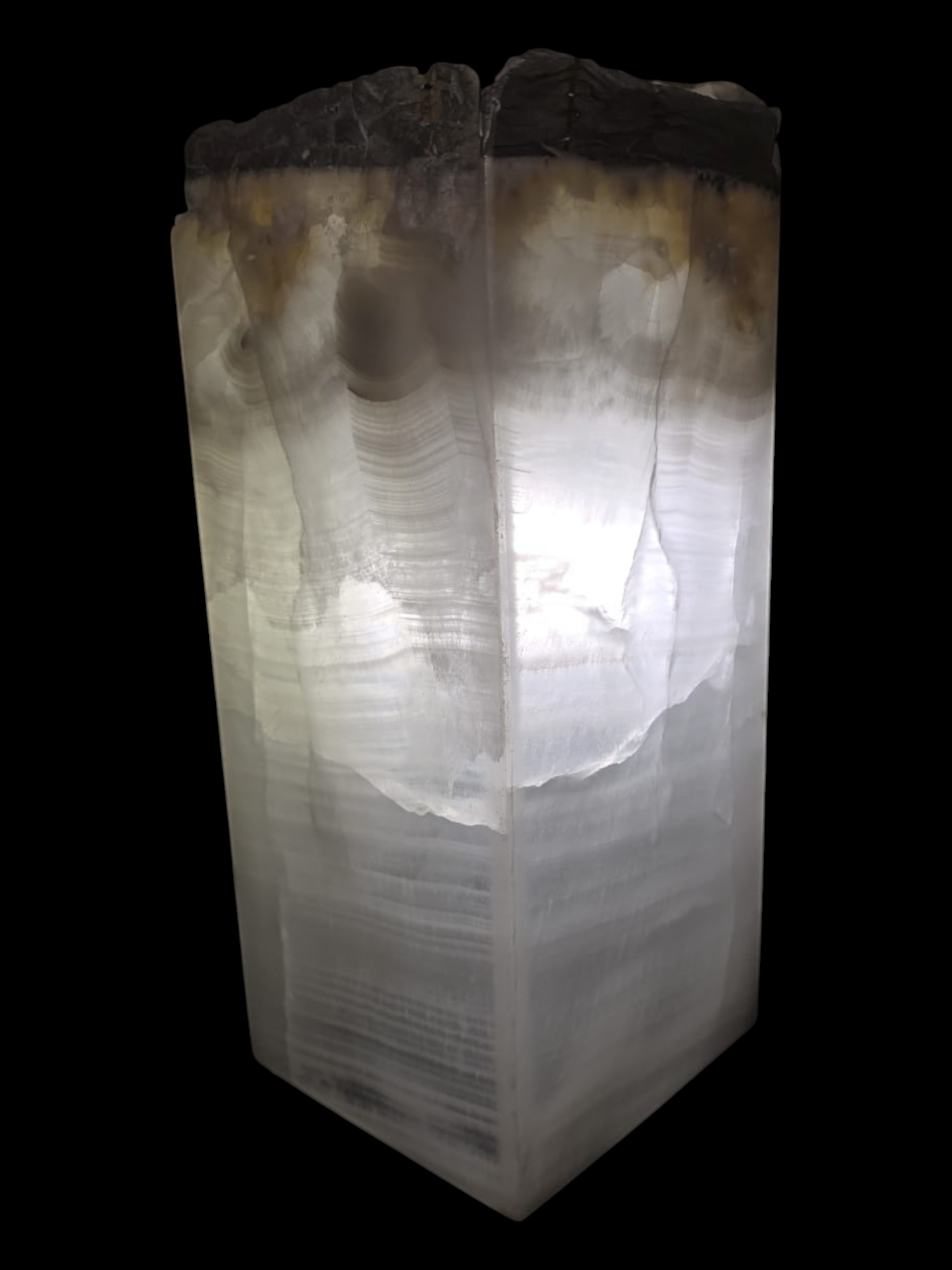 Layers of the Earth, multicolored onyx rectangle table lamp with its irregular top adds a unique touch to any room - with layers of stunning earthstone in shades of multicolored onyx, it's truly an amazing piece.